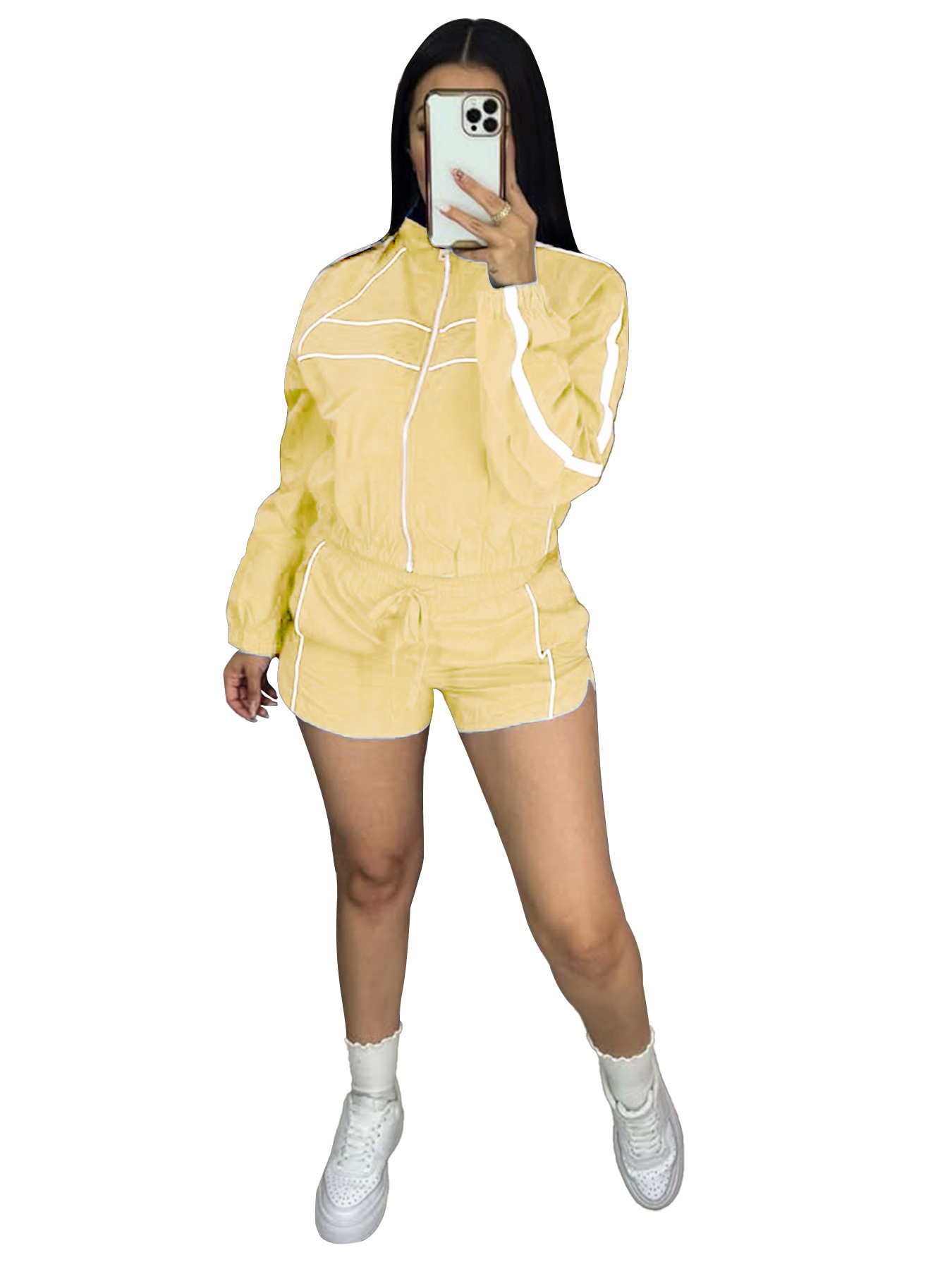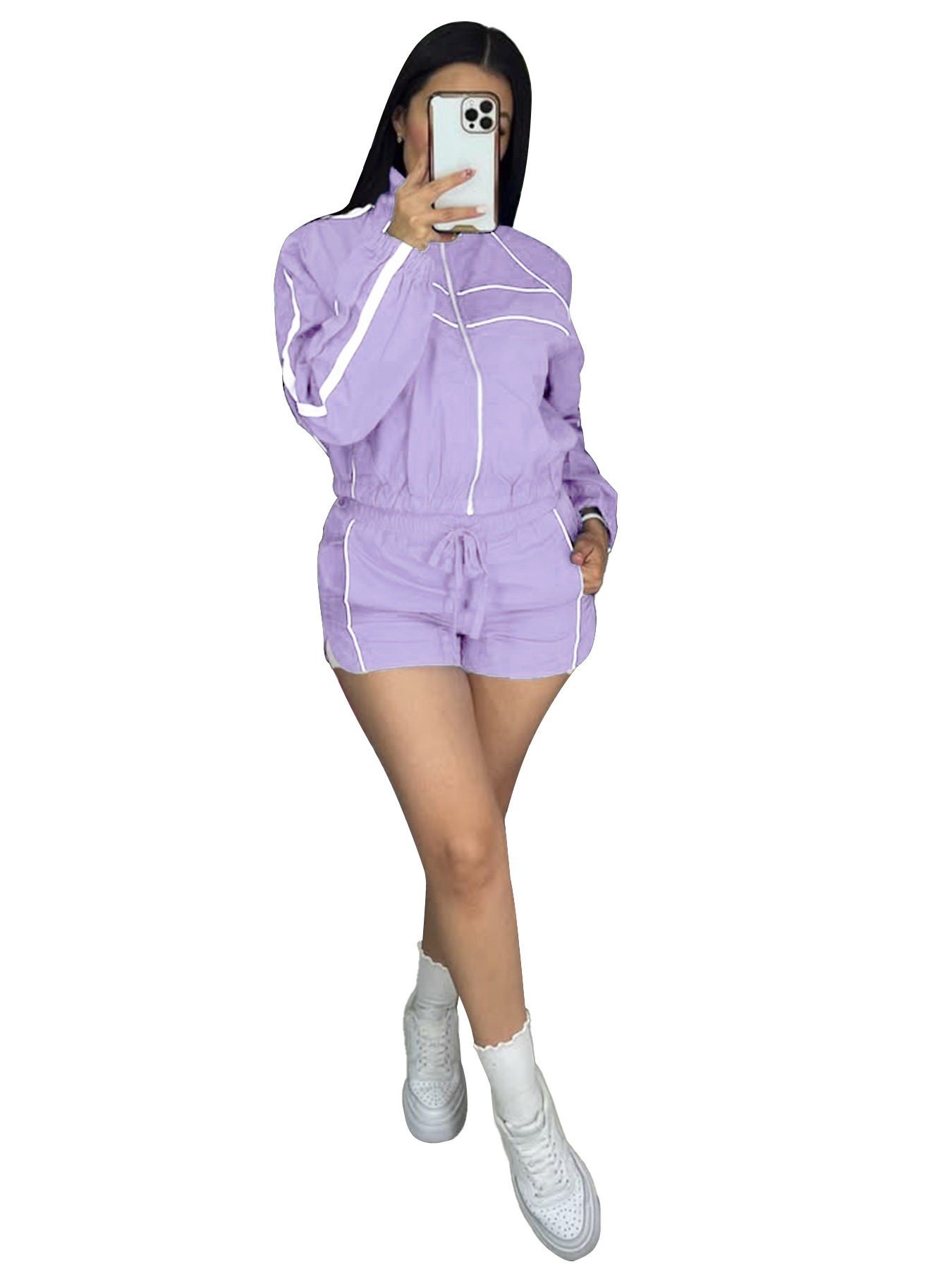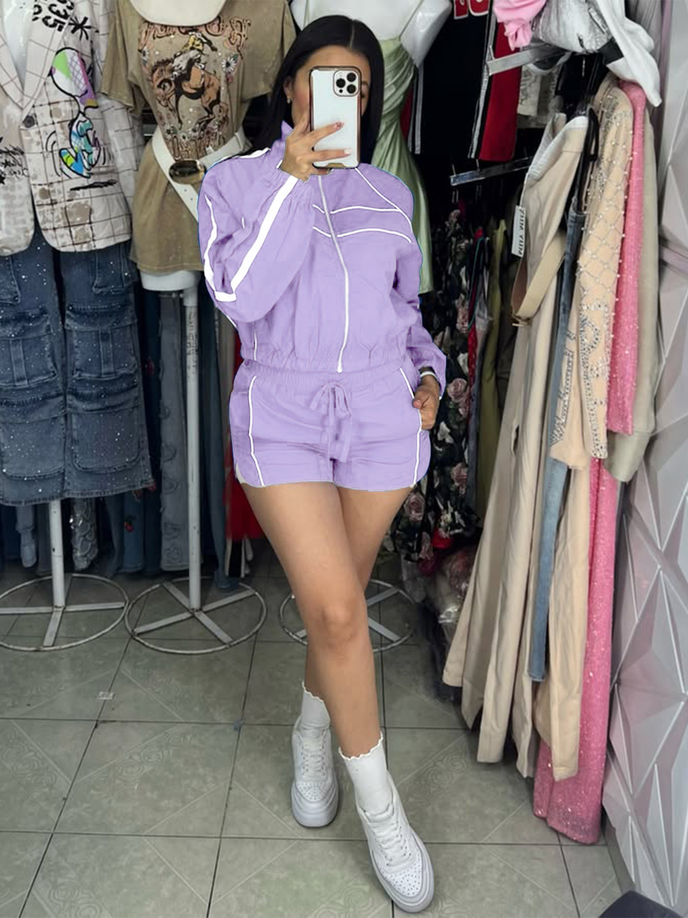 Zippered Contrast-Color Webbing Shorts Womens Two-Piece Set