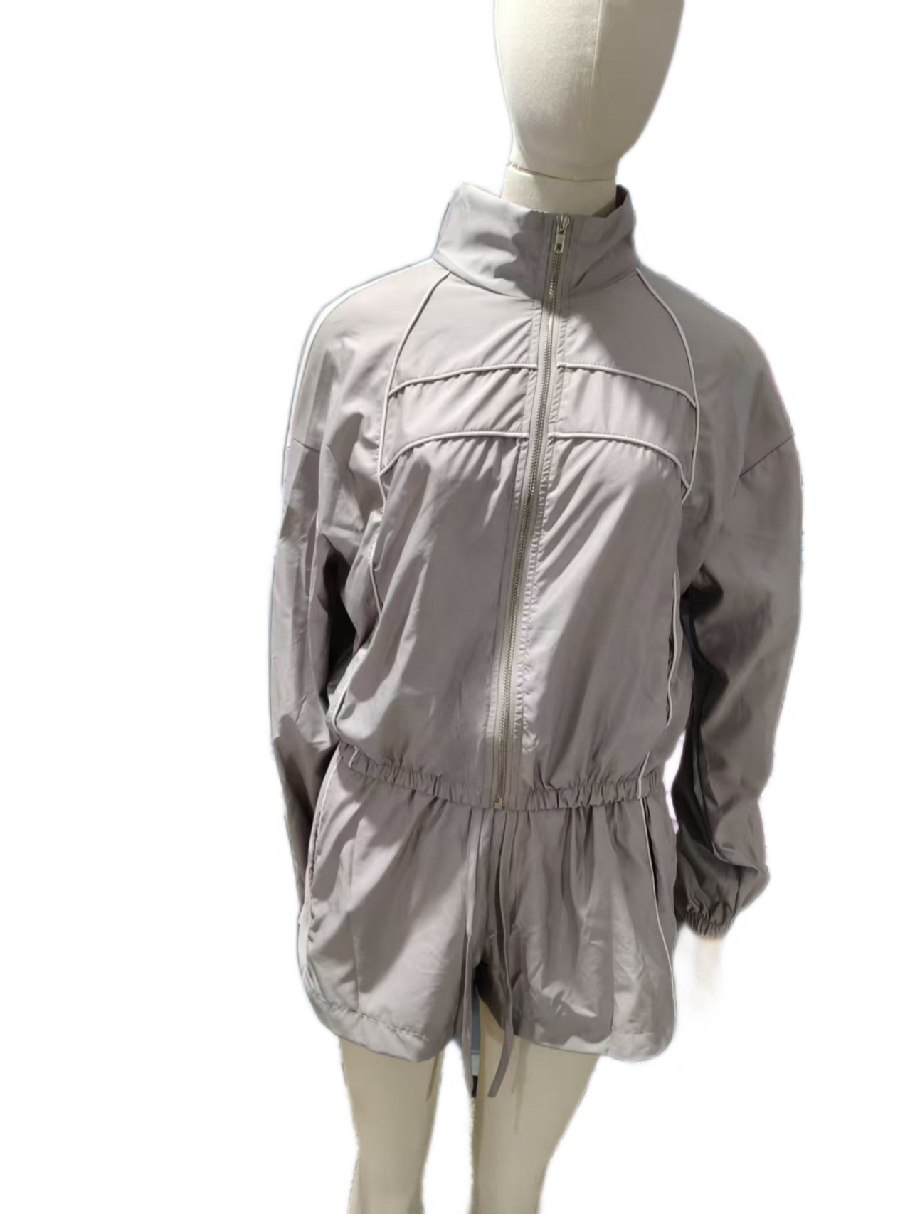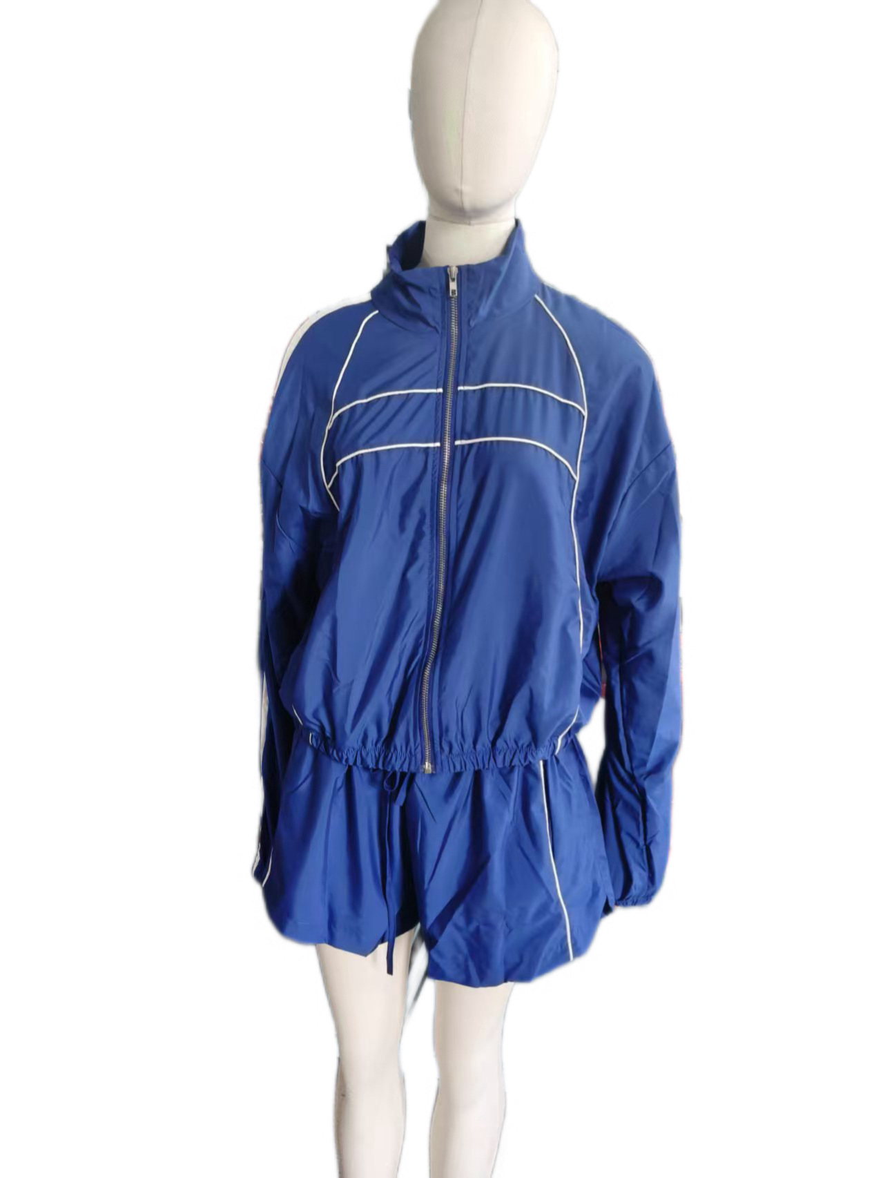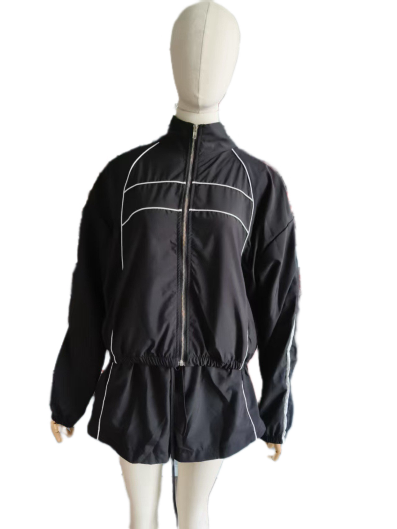 Zippered Contrast-Color Webbing Shorts Womens Two-Piece Set
